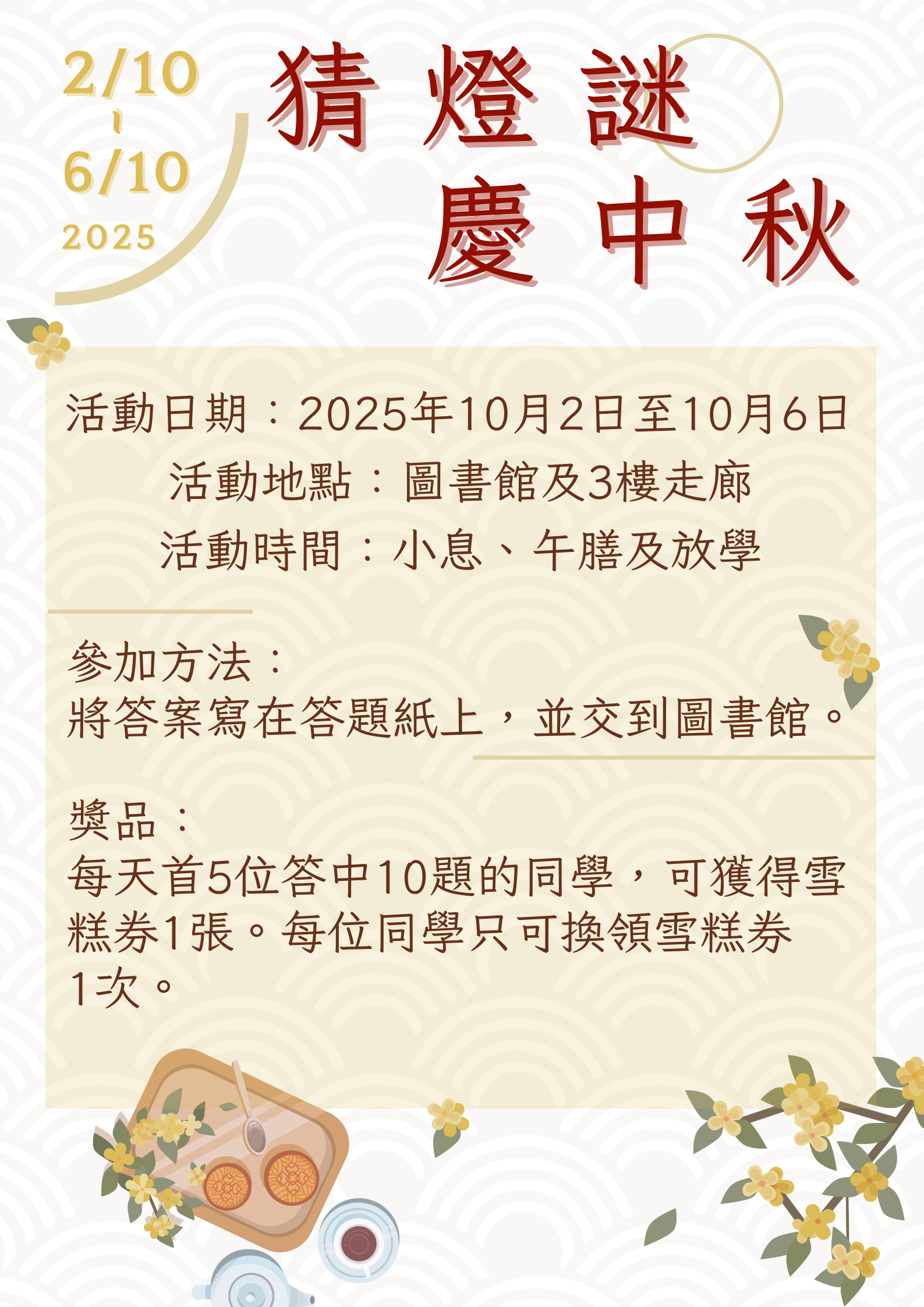 2025年10月2日- 6日 「猜燈謎 慶中秋」活動