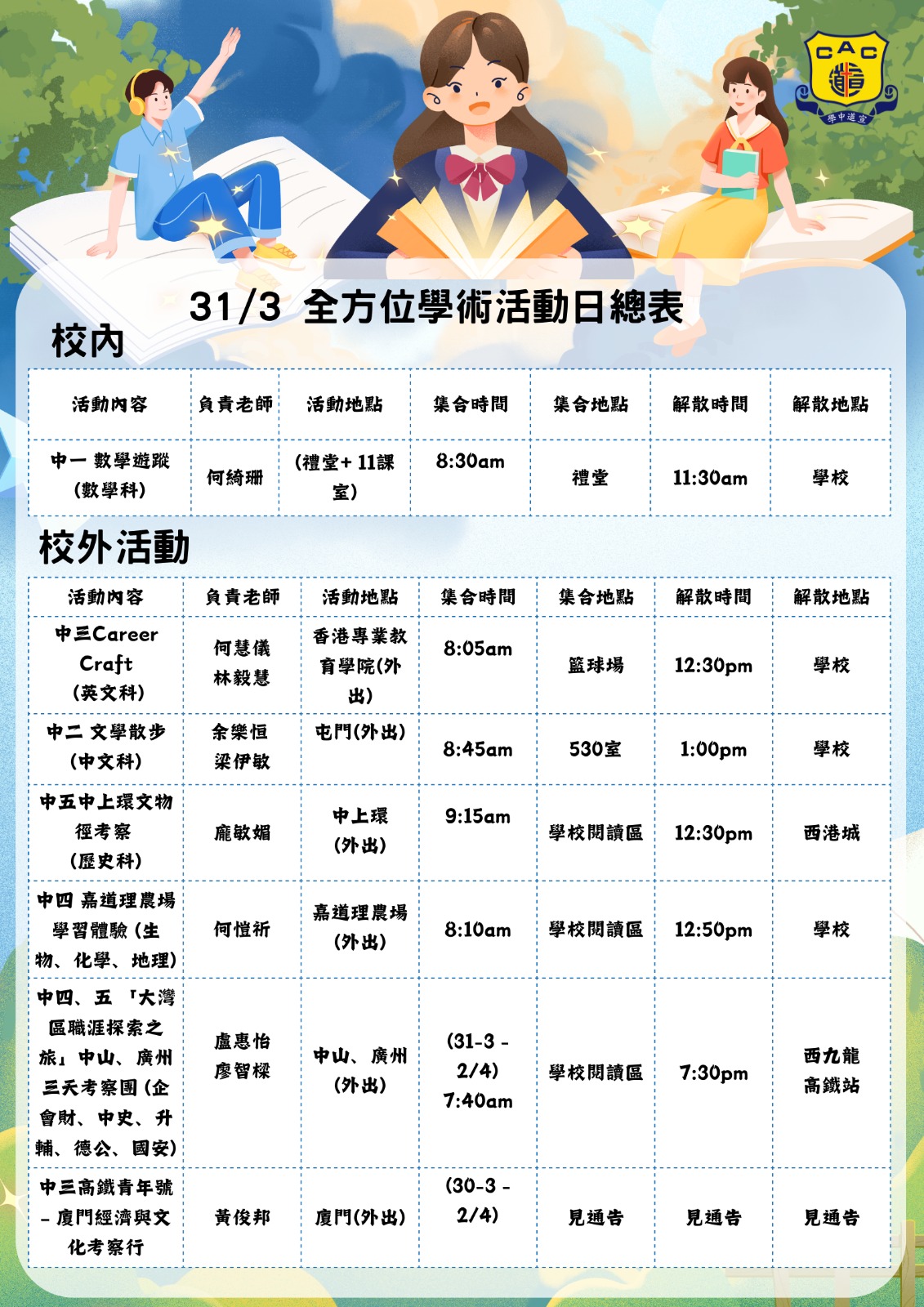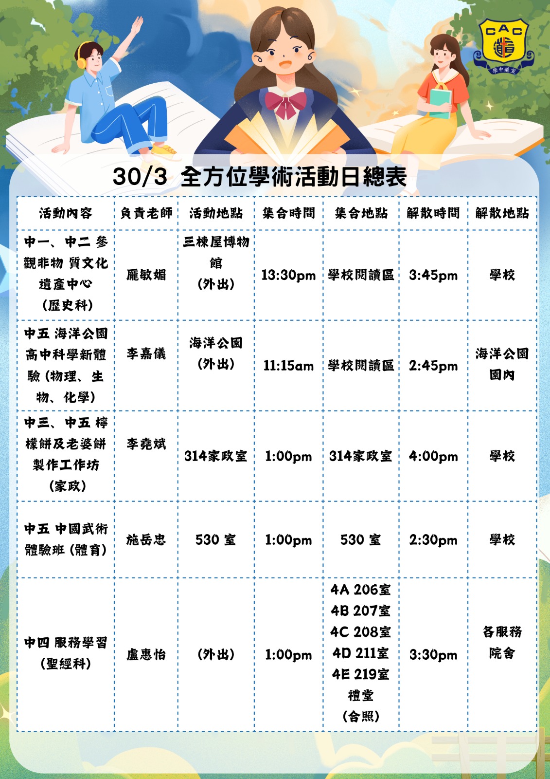 全方位學術活動日總表